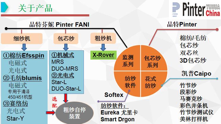 Pinter.FANI單錠監(jiān)測系統(tǒng),有光電式和電磁式兩種,包括:BLUMIS毛紡單錠監(jiān)測(專用于青澤450/451毛紡細紗機),Effispin棉紡單錠監(jiān)測(電磁式和光電式2大類7個系列),Star-yarn賽絡紡單錠監(jiān)測,Star-L/Duo Star-L包芯紗芯絲監(jiān)測,MRS/Duo MRS包芯紗芯絲監(jiān)測,和 R-Stop 粗紗自停裝置。